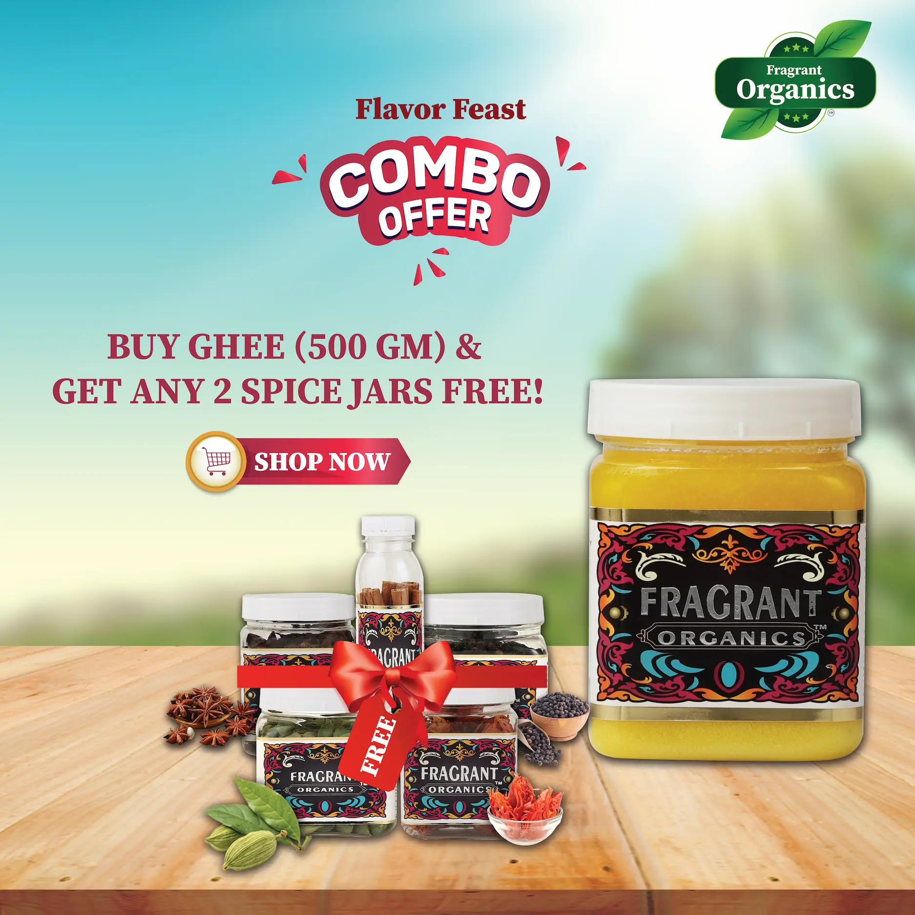 Bring home the wholesome richness of Fragrant Organics Ghee, crafted from pure, high-quality milk and slow-cooked to perfection. Its natural golden hue, granular texture, and rich aroma make every meal indulgent and nourishing.
